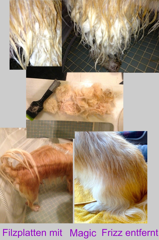 Ich habe zwei langhaarige Havaneser, einer davon mit sprödem Fell. Vorm Kämmen sprüh ich ihn damit leicht ein und sein Fell lässt sich kämmen wie Butter. Kein Ziepen mehr, einfach genial!